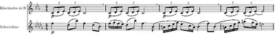 - 2 Clarinetes en Mi bemol (2.º doblando como 4.º clarinete en Si bemol y La).[3]