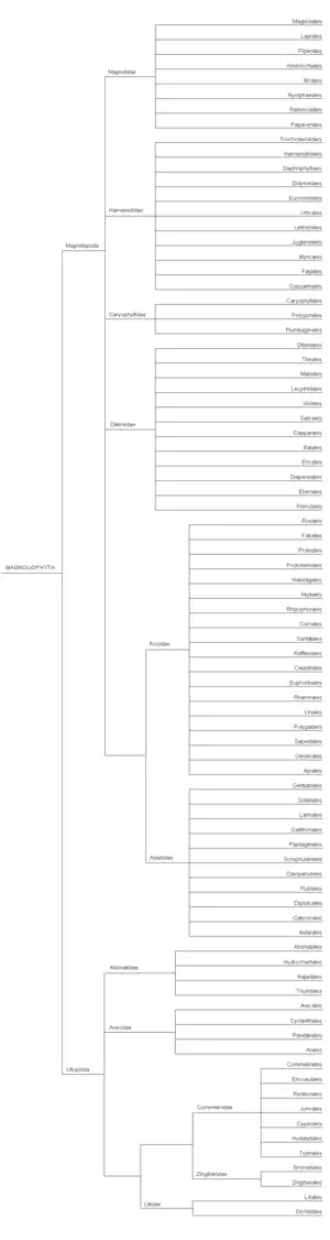 - Subclase Magnoliidae (principalmente dicotiledóneas basales)