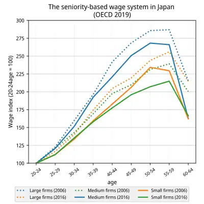 El sistema Nenkō de salario por antigüedad (年功序列 Nenkō joretsu?, lit. "ordenación por tiempo de experiencia") es el sistema japonés en virtud del cual un empleado va ascendiendo en la empresa en función de su edad, y por tanto, su salario aumenta a medida que se acerca la jubilación.[2][3][4]