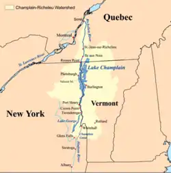 El 3 de mayo, el congreso de Massachusetts autorizó a Benedict Arnold a llevar una tropa para tomar el fuerte Ticonderoga, al sur del lago Champlain en la provincia de Nueva York, que sabían que poseía muchas armas y estaba mal defendido. Arnold llegó a Castleton (que actualmente se encuentra en Vermont pero por aquel entonces era parte del territorio disputado entre Nueva York y Nuevo Hampshire) el día 9, donde se unió a Ethan Allen y sus militares procedentes de Connecticut, todos ellos habían llegado independiente a la idea de tomar Ticonderoga. Esta compañía, bajo el mando conjunto de Arnold y Allen, capturó el fuerte Ticonderoga y también el fuerte Crown Point. También capturó la gran embarcación militar que se encontraba en el lago Champlain en un ataque al fuerte Saint-Jean. Capturaron 180 cañones que les fueron muy útiles en el asedio a Boston.