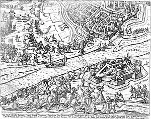 En 1586, los ingleses, bajo el mando del conde de Leicester, tomaron el importante reducto de Zutphen, pero pronto el traidor inglés Rowland York entregó el reducto a los españoles, dejando Zutphen bajo su completo control.[5] York murió allí de viruela un año después, aunque es posible que los españoles lo envenenaran para que no volviera a traicionar.[6] Como consecuencia, Guillermo Estanley entregó la cercana ciudad de Deventer a los españoles.[7]