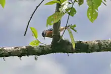 La reproducción de la especie no ha sido bien estudiada. En el noreste de la India, la temporada de apareamiento es de abril a mayo. El nido se coloca fuera de la tierra, entre dos y ocho metros de altura, y con frecuencia se construye en un agujero de un árbol (vivo o muerto) de roble o rododendro, u, ocasionalmente, en otros árboles de gran tamaño. Los nidos se construyen con hojas y cortezas, unidas con pelos, frecuentemente de las ratas de bambú. Si la abertura del agujero es demasiado grande, se cementa con barro para reducir el tamaño de entrada. El ave pone normalmente cuatro a seis huevos blancos, pintados con manchas rojas, y miden 20.8 mm x 15.3 mm (0.82 x 0.60 pulg).[19]