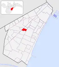 El barrio fue construido en 1954[2] y el conjunto central de viviendas se compone de cuatro grupos de bloques en planta de U y otros dos formando manzanas cerradas en torno a pequeños y estrechos patios interiores. Contiene un pequeño jardín tropical con especies de ficus, palmeras washingtonias, palmeras canarias, cycas, aloes, rosales, etc.[3][4]