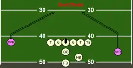 - Esta obra contiene una traducción derivada de «Slant (route)» de Wikipedia en inglés, publicada por sus editores bajo la Licencia de documentación libre de GNU y la Licencia Creative Commons Atribución-CompartirIgual 4.0 Internacional.