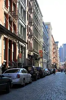 El SoHo, a veces escrito como Soho,[2] es un barrio del bajo Manhattan, Nueva York, Estados Unidos. Desde el siglo XX ha sido la ubicación de muchos lofts de artistas y galerías de arte y también ha sido conocido por su variedad de tiendas, que van desde boutiques de moda a outlets de cadenas nacionales e internacionales. La historia del área es un ejemplo arquetípico de regeneración urbana interna y de gentrificación abarcando desarrollo socioeconómico, cultural, político y arquitectónico.[3]