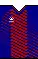 - Uniforme local: Camiseta azul marino con franjas verticales rojas, pantalón azul marino con detalles rojos y medias azul marino con una línea horizontal roja.