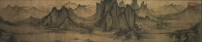 Al igual que sus habilidades intelectuales, la gente exhibió hábitos y pasatiempos culturales que marcaron su estatus sociales y refinamiento. El término erudito 'nueve invitados' (jiuke)—una extensión de las Cuatro Artes de la Academia China—fue una metáfora para los pasatiempos de la gente como la cítara china, el ajedrez chino, meditación budista zen, tinta (caligrafía y pintura), casas de té, alquimia, canto poético, conversaciones, y salas de vino.[54] La producción pictórica de la alta burguesía cambió radicalmente de estilo entre el periodo Norte y el Sur durante la dinastía Song, debido a las circunstancias políticas, demográficas y sociales subyacentes. La alta burguesía y los funcionarios del Song del Norte, que estuvieron en gran medida interesados en abordar asuntos de interés nacional y no tanto en temas locales, prefirieron pintar escenas paisajísticas enormes donde las personas aparecían totalmente reducidas.[55] Durante el periodo Sur, los intereses políticos, familiares y sociales se vieron muy influidos por asuntos más locales; estos cambios se vieron reflejados en el principal estilo pictórico del periodo Sur, en el que las escenas pequeñas e íntimas situaron su foco principal sobre las personas.[55]