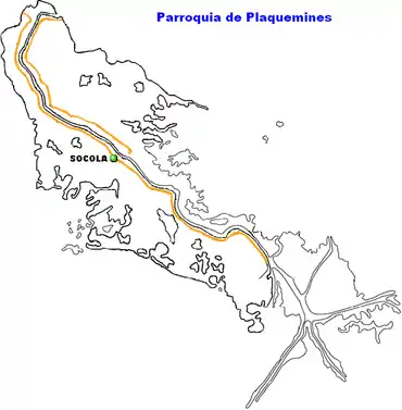 Localización de Socola en el mapa de la Parroquia de Plaquemines.