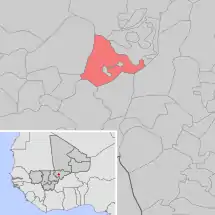 Se encuentra ubicada en el centro del país y de la región de Mopti, cerca de la confluencia de los ríos Níger y Bani.