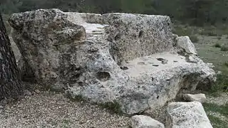 Los lagares y las pilas están elaborados sobre grandes bloques de piedra caliza caídos de las montañas. Se extraía el mosto de la uva, que después de fermentar se convertía en vino.[5]
