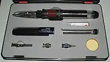 Pueden utilizarse soldadores pequeños calentados por una batería o por combustión de un gas como el butano en un pequeño depósito autónomo cuando no hay electricidad o se requiere un funcionamiento inalámbrico. La temperatura de funcionamiento de estos soldadores no se regula directamente; los soldadores de gas pueden cambiar la potencia ajustando el flujo de gas. Los soldadores de gas pueden tener puntas intercambiables que incluyen puntas de soldadura de diferentes tamaños, cuchillo caliente para cortar plásticos, soplete en miniatura con llama caliente y soplete de aire caliente pequeño para aplicaciones como para encoger tubos termoretráctiles.