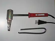 Un cuchillo caliente es una forma de soldador equipado con una hoja de doble filo que se encuentra sobre un elemento calefactor. Estas herramientas pueden alcanzar temperaturas de hasta 1000 grados Fahrenheit (538 grados centígrados), lo que permite cortar materiales de tela y espuma sin preocuparse por el desgastar. Los cuchillos calientes pueden utilizarse en aplicaciones de automoción, náutica y alfombras, así como en otros usos industriales y personales.[22]