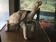 El Museo Americano de Historia Natural fue elegido por el parque nacional Galápagos y por el gobierno ecuatoriano para realizar el proceso de taxidermia,[11] en donde se trabajó a detalle sobre el cuerpo del animal y duró más de un año.[49][66] Desde septiembre de 2014 hasta enero de 2015, el Solitario George fue exhibido en el Museo Americano de Historia Natural,[67] en Nueva York, puesto que ese lugar poseía los requisitos ambientales para poder conservar el cuerpo del espécimen disecado sin que este sufriera daño alguno.[10] El Museo Americano de Historia Natural, en su sitio web, titula: «Conoce al Solitario George, la cara de la extinción».[68]