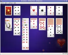 También conocido como "solitario con cartas", generalmente consiste en colocar las cartas en un tablero y ordenarlas según unas reglas específicas.[1] El juego de cartas solitario más común es el Klondike. Otras variantes populares son Spider, Yukon y Carta blanca. Los orígenes del solitario con cartas no están claros, pero los primeros registros aparecen a finales del siglo XVIII en el norte de Europa y Escandinavia.[2]