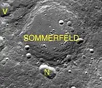 Sommerfeld es un gran cráter de impacto localizado no muy lejos del polo norte de la Luna. Se encuentra en la cara oculta, por lo que solo se puede ver desde naves en órbita. Al sur de Sommerfeld se halla Rowland, un cráter de tamaño parecido, y al sureste aparece la enorme planicie amurallada de Birkhoff.