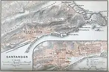 Mapa de Santander en 1908, donde se aprecia la situación del puerto, del muelle y de la calle Alta.