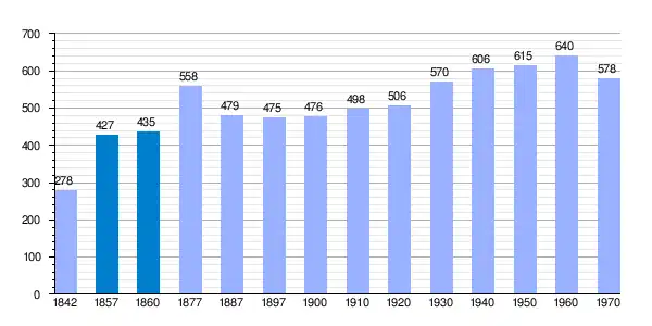 | Gráfica de evolución demográfica de Sotos[3] entre 1842 y 1970 |