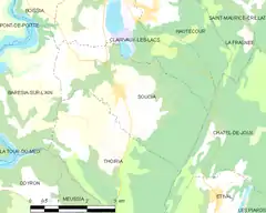 - Situación de Soucia en un mapa de Francia y de comunas limítrofes (enlace roto disponible en Internet Archive; véase el historial, la primera versión y la última). (en francés)