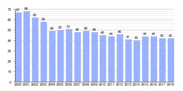 | Gráfica de evolución demográfica de Souto entre 2000 y 2018 |