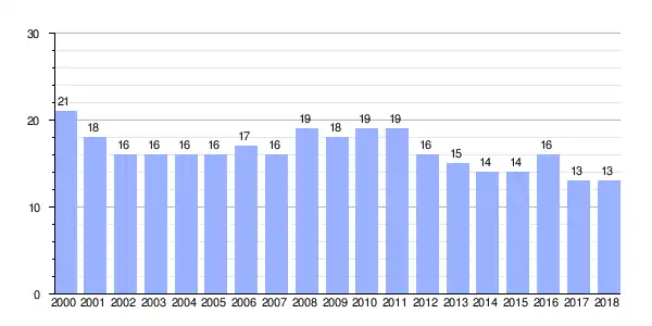 | Gráfica de evolución demográfica de Souto entre 2000 y 2018 |