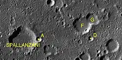 Por convención estos elementos son identificados en los mapas lunares poniendo la letra en el lado del punto medio del cráter que está más cercano a Spallanzani.
