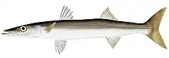 - Esta obra contiene una traducción derivada de «Sphyraena pinguis» de Wikipedia en catalán, publicada por sus editores bajo la Licencia de documentación libre de GNU y la Licencia Creative Commons Atribución-CompartirIgual 4.0 Internacional.