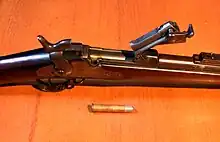 El fusil fue originalmente suministrado con cartuchos que tenían casquillos de cobre y fue empleado en el oeste durante la segunda mitad del siglo XIX, pero los soldados rápidamente descubrieron que el cobre se expandía excesivamente en la recámara al disparar. Esto a veces bloqueaba el fusil, evitando la extracción del casquillo vacío. Para desbloquearlo se debía extraer el casquillo con la hoja de un cuchillo u otra herramienta parecida, llegando a inutilizar en combate la carabina, que no tenía baqueta para retirar casquillos atascados, al punto de solo poder usarla como un mazo.