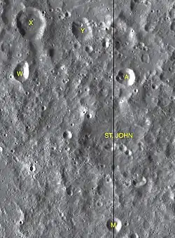 Por convención estos elementos son identificados en los mapas lunares poniendo la letra en el lado del punto medio del cráter que está más cercano a St. John.