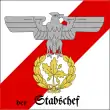 Después de 1933, la insignia de Stabschef consistía en un patrón de "lanzas cruzadas", envuelto en un círculo de media hoja de roble. Después de 1934, la insignia se cambió a un patrón de hoja de roble de tres hojas enrolladas similar a la insignia de Reichsführer-SS.[9] Con la caída de la Alemania nazi, las Sturmabteilung dejó de existir y con ella el Stabschef.