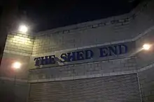 El Shed End está situado a lo largo de la parte sur del campo. En 1930, una nueva terraza se construyó en el lado sur para los espectadores de pie. Era conocida originalmente como el Fulham Road End, pero los aficionados la apodaron como The Shed End y esto le permitió al club cambiar de manera oficial su nombre. No se sabe el origen exacto del nombre, pero el hecho de que el techo parecía un cobertizo de chapa jugó un papel importante.[2] Esta gradería se convirtió en la más favorecida, ya que contaba con el más ruidoso y leal apoyo de los aficionados, hasta que fue demolida en 1994 cuando por ley se decretó que todos los estadios debían tener asientos individuales como medida de seguridad luego del Informe Taylor a raíz de la Tragedia de Hillsborough. Sin embargo, la gradería construida en su reemplazo siguió siendo conocida con el mismo nombre.