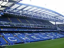 En su nivel inferior se encuentra el "Salón del Centenario", en el cual se llevan cabo ceremonias del club,[37] además de que en su exterior se encuentran los Hoteles Millennium & Copthorne, siendo este último la cara principal de la gradería.[38][39] Las cenizas del fallecido exjugador Peter Osgood fueron colocadas debajo del punto penal que se encuentra situado frente a la gradería en 2006.