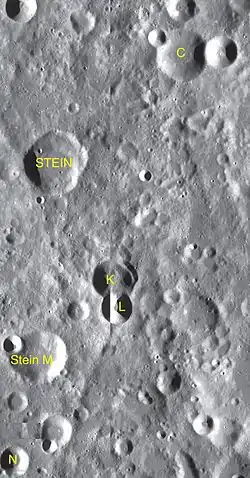 Por convención estos elementos son identificados en los mapas lunares poniendo la letra en el lado del punto medio del cráter que está más cercano a Stein.