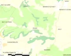 - Situación de Stigny en un mapa de Francia y de comunas limítrofes (en francés)