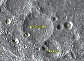 Por convención estos elementos son identificados en los mapas lunares poniendo la letra en el lado del punto medio del cráter que está más cerca de Stratton.