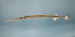 Con el cuerpo alargado y con la boca en un pico largo y afilado, se ha descrito una captura de 111 cm, aunque la longitud máxima normal es de unos 60 cm.[4] No tiene espinas en las aletas, con pigmento negro detrás de los ojos que no se extiende por debajo del nivel de la mitad del ojo.[5]