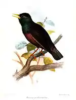 | S. v. nobilior | (Hume, 1879) | Afganistán, Sureste de Turkmenistán y de Uzbekistán hasta el Este de Irán. | Parecida a purpurascens pero más pequeña y con alas más cortas; brillo púrpura en coberteras de los oídos, y brillo bastante rojizo en la parte inferior del cuerpo y la parte superior de las alas. | |