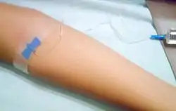 Inyección de solución salina intravenosa.