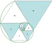 y si contamos la longitud de cada cadena, obtenemos la secuencia de números de Padovan:
