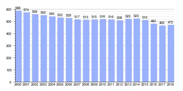 | Gráfica de evolución demográfica de Suevos (parroquia) entre 2000 y 2018 |