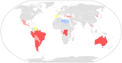 Chile (establecido por primera instancia en 1962[5], pero abolido en 2012 con la llegada de la inscripción automática[6]; reinstaurado en 2022[7])