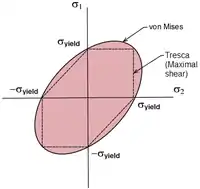 El criterio de fluencia de Tresca se considera obra de Henri Tresca.[3] También se conoce como "teoría tensión cortante máxima" (MSST) y criterio Tresca-Guest[4] (TG). En términos de las tensiones principales el criterio de Tresca se expresa como
