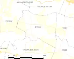 Surrain es una población y comuna francesa, situada en la región de Baja Normandía, departamento de Calvados, en el distrito de Bayeux y cantón de Trévières.