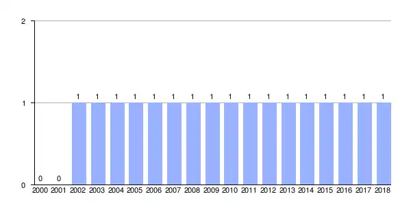 | Gráfica de evolución demográfica de Susarrón entre 2000 y 2018 |