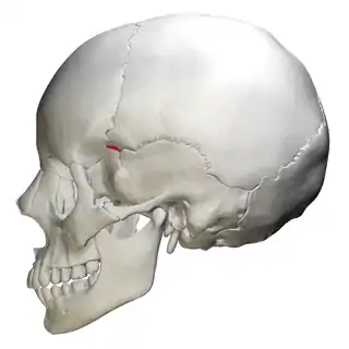 ![]() Ubicación de la sutura esfenoparietal Hueso parietal Hueso esfenoides | ||