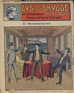 En 1907 los artículos serían adaptados al formato libro. En esta ocasión, Elvestad utilizaría por primera vez el alias de Stein Riverton. En 1908 publicaría dos librillos, Luz y sombra y El ladrón, cuyo argumento se centra en las peripecias del detective Knut Gribb y de su némesis Thomas Ryer. Sven Elvestad publicaría las primeras 28 historias con el alias Kristian F. Biller, antes de cambiarlo por el de Stein Riverton. Elvestad reeditaría su obra más adelante, sustituyendo al detective Knut Gribb por el más comercial Asbjørn Krag.[4]