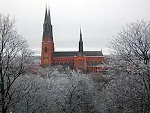 En el siglo XIV, fue asolada por una epidemia de peste negra (peste bubónica).[30] Durante este periodo las ciudades suecas también comenzaron a obtener mayor autonomía y fueron fuertemente influidas por los mercaderes alemanes de la Liga Hanseática, activos especialmente en Visby. En 1319, Suecia y Noruega fueron unidas por el rey Magnus Eriksson y en 1397 la reina Margarita I de Dinamarca efectuó una unión personal de Suecia, Noruega y Dinamarca, naciendo así la Unión de Kalmar. Sin embargo, los sucesores de Margarita, cuyo poder estaba centrado en Dinamarca, no lograron controlar a la nobleza sueca. Por largos periodos, el poder efectivo lo poseían regentes (notablemente aquellos de la familia Sture) elegidos por el parlamento sueco. Para remediar la situación, el rey Christian II de Dinamarca ordenó la ejecución de los nobles de Estocolmo. La matanza fue conocida como el «Baño de sangre de Estocolmo» e incitó a la nobleza sueca a formar una nueva resistencia, por lo que el 6 de junio de 1523, nombraron a Gustavo I de Suecia como su rey.[31] Este hecho se considera a menudo como la fundación del Estado moderno de Suecia y el 6 de junio es ahora la Fiesta Nacional del país. Poco después, Gustavo I rechazó el catolicismo e introdujo la Reforma Protestante en el país. Por estos acontecimientos a Gustavo I se le conoce como el «Padre de la Nación».[32]