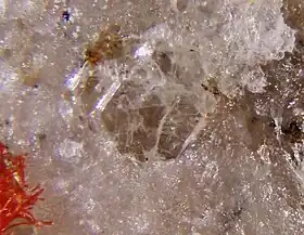 ![]() Cristal incoloro hexagonal de swedenborgita de Långban (Suecia) | ||