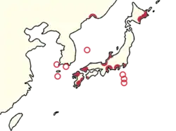 Se la encuentra en Japón, Rusia y Corea del Sur. Habita en islas rocosas y acantilados en aguas costeras del Pacífico templadas.