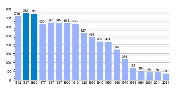| Gráfica de evolución demográfica de Támara de Campos[43] entre 1842 y 2021 |
