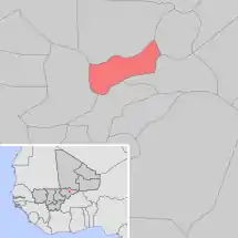 Se encuentra ubicada en el centro-este del país, cerca de la frontera con Burkina Faso y con la región de Tombuctú.